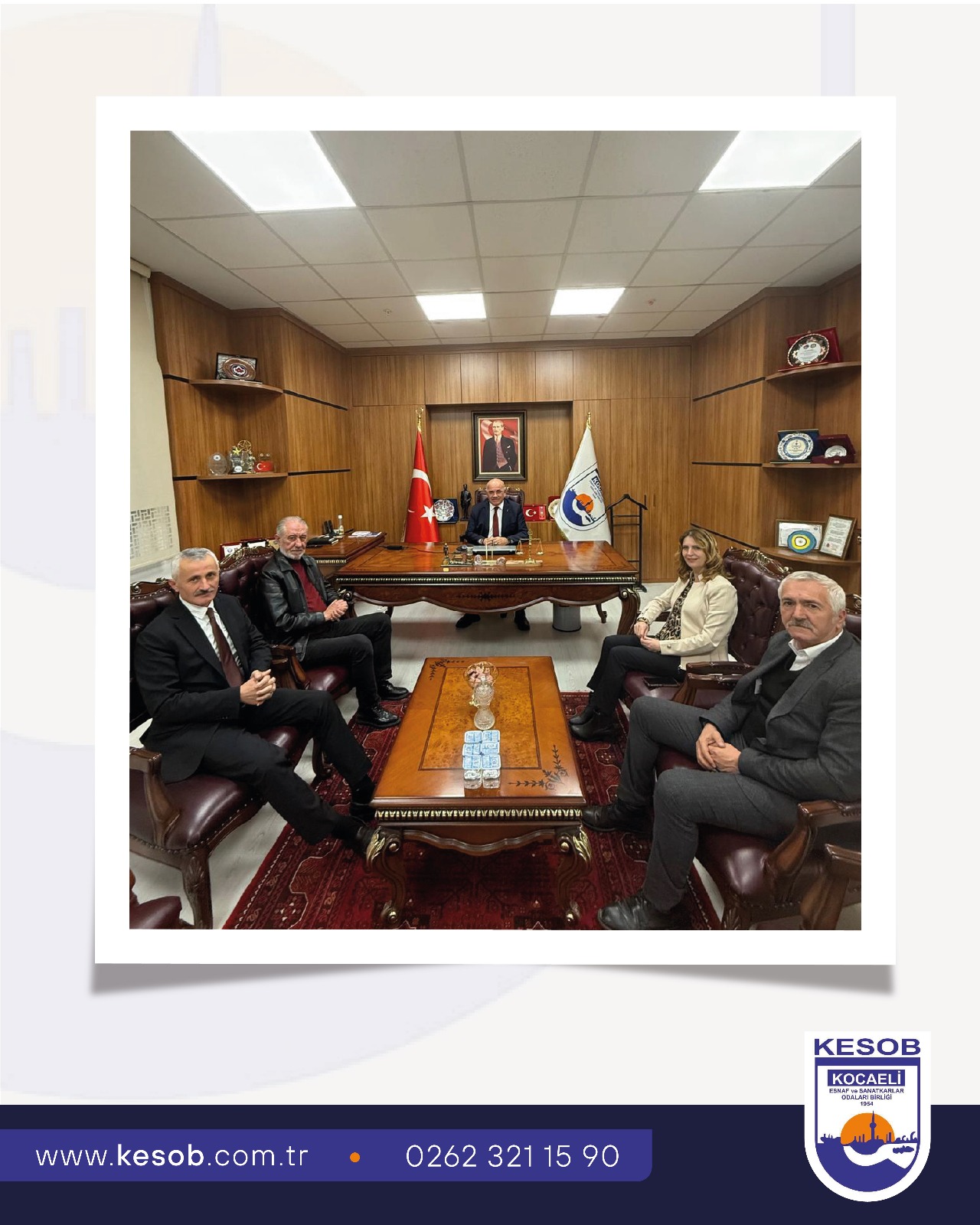 İzmit ilçemizin değerli muhtarları; Kadıköy Mahalle Muhtarı Melda Okur, Erenler Mahalle Muhtarı İhsan Sarı, Cedit Mahalle Muhtarı Mehmet Nabi Keskin ve Terzibayırı Mahalle Muhtarı Tuncay Bakırcı, Başkanımız Kadir Durmuş’u ziyaret etti.