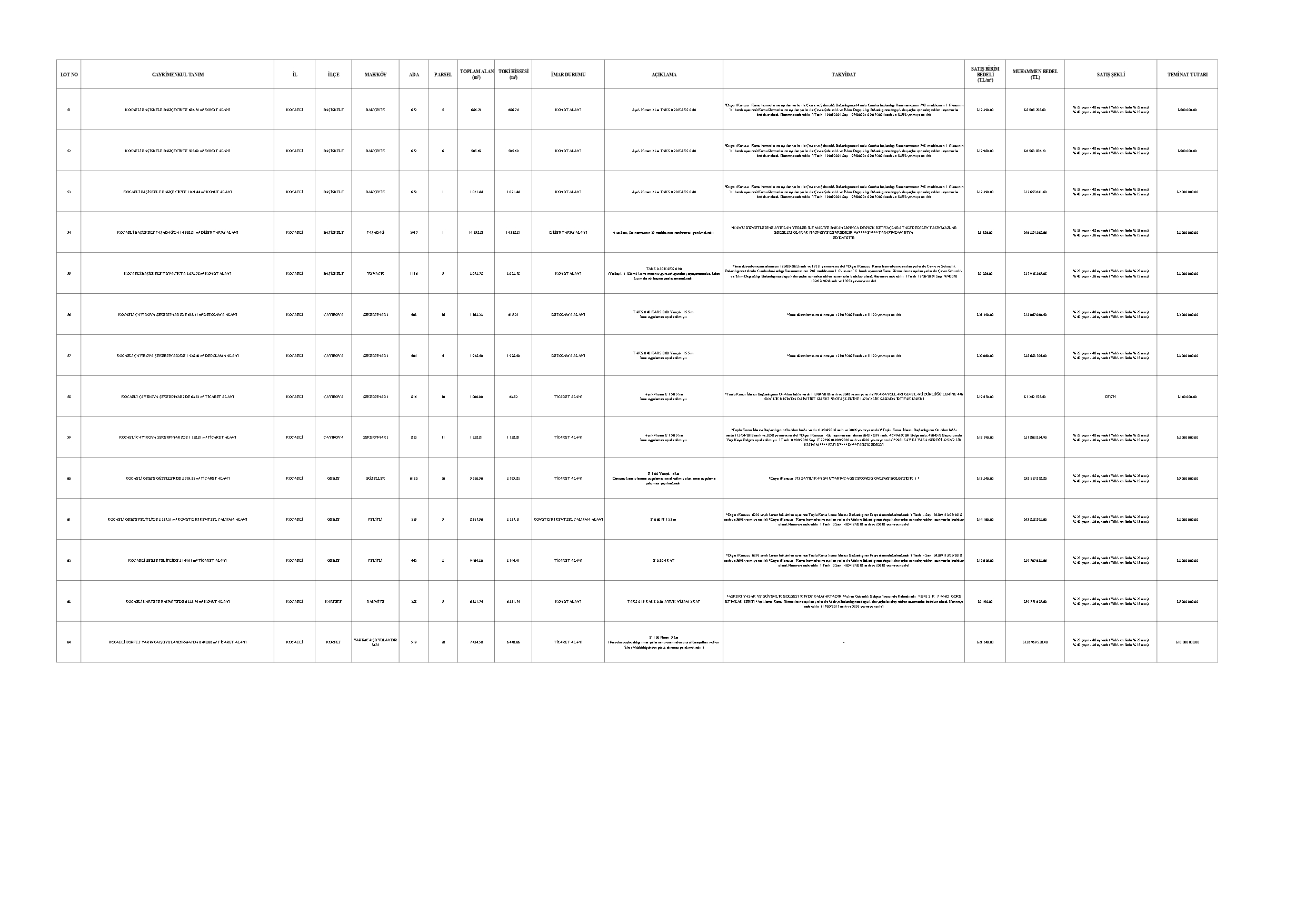 Toki 37 İlde 252 Muhtelif Arsa Satışı